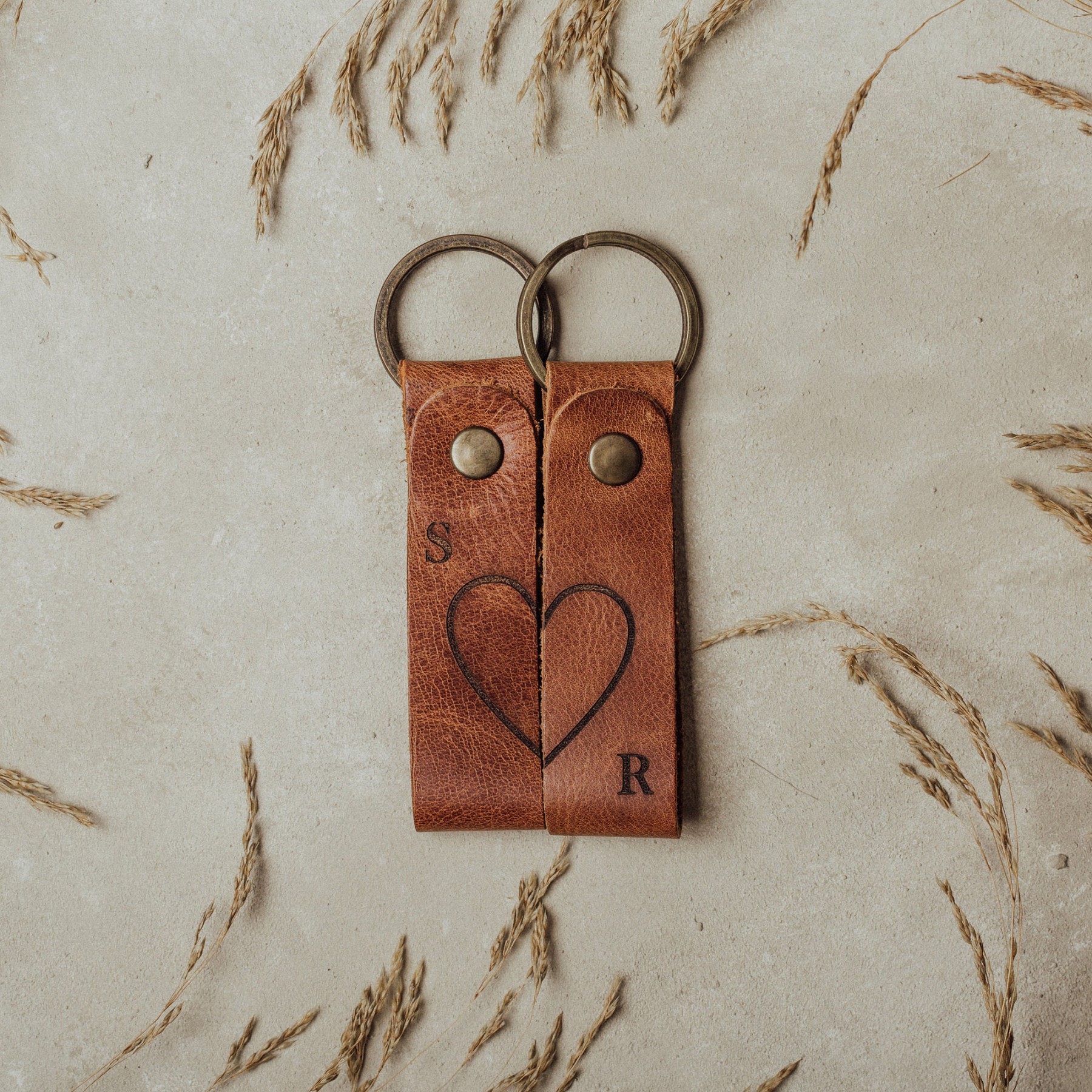 Custom Couple Matching Leather Keychain Set with Initials Anniversary Gift for Her Him Valentine's Day Gifts for Couples