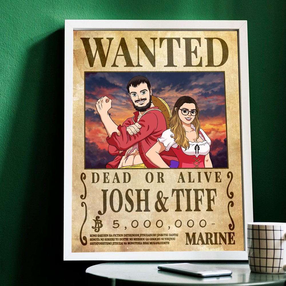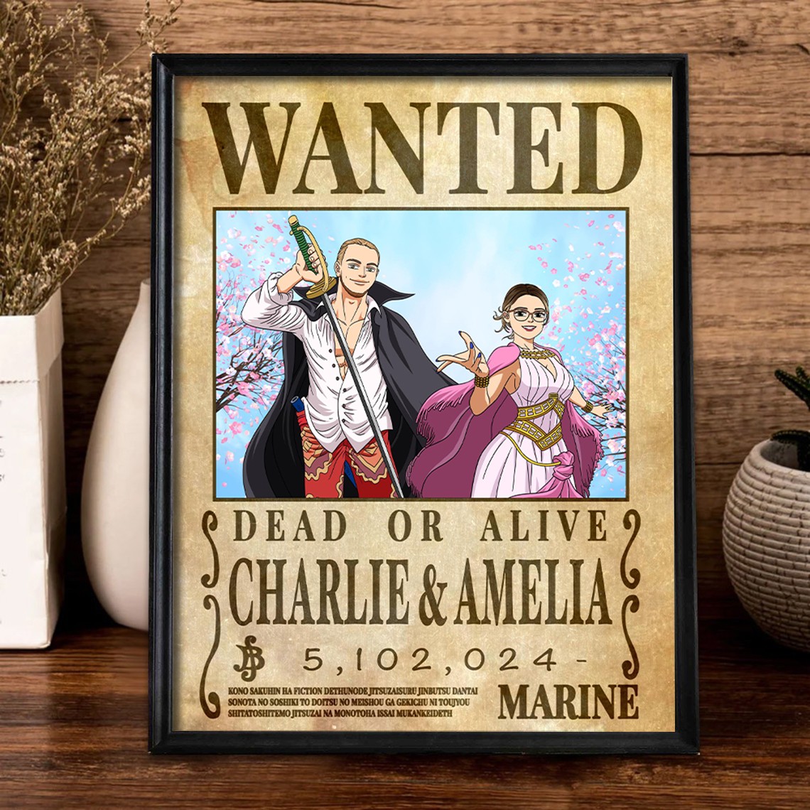 Turn Yourselves Into Anime Legends! Transform yourself and your loved one into a Wanted Poster–style anime characters! Each artwork is digitally hand-drawn and printed on premium materials — a perfect keepsake for anime fans and collectors alike. Perfect for birthdays, anniversaries, Valentine’s Day, Christmas, or any special occasion!