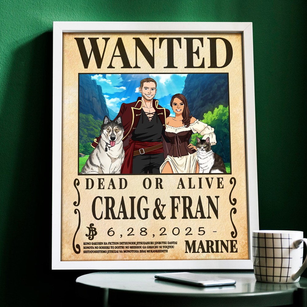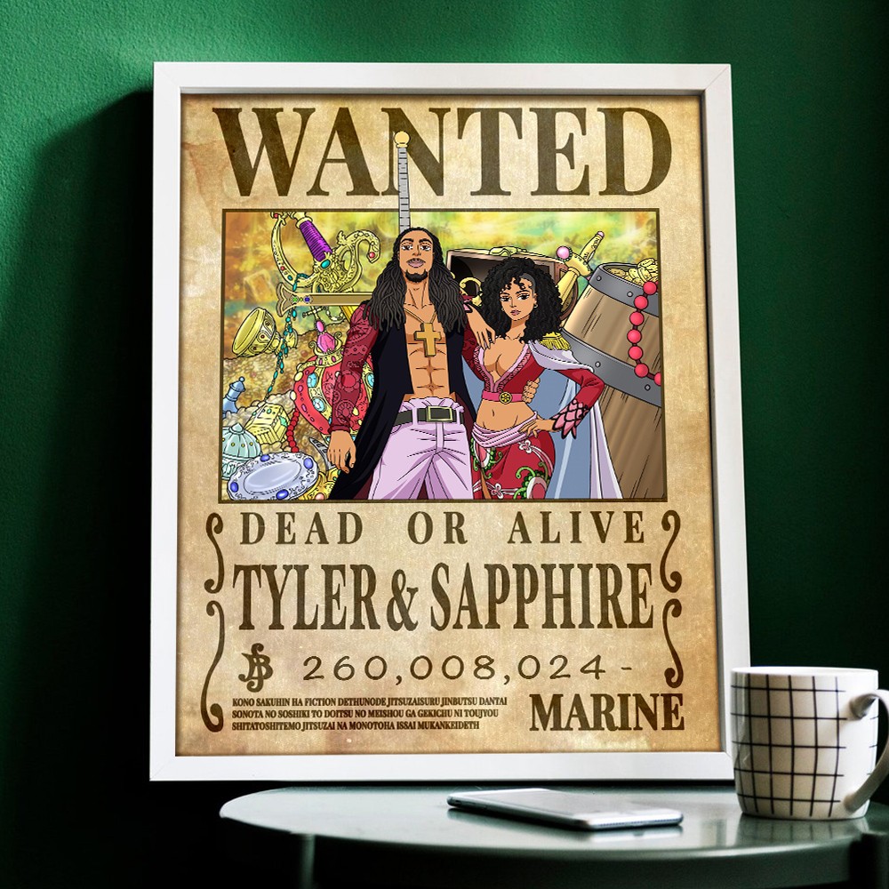 Turn Yourselves Into Anime Legends! Transform yourself and your loved one into a Wanted Poster–style anime characters! Each artwork is digitally hand-drawn and printed on premium materials — a perfect keepsake for anime fans and collectors alike. Perfect for birthdays, anniversaries, Valentine’s Day, Christmas, or any special occasion!