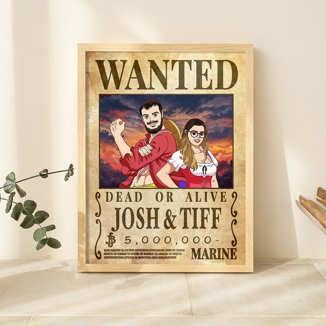Turn Yourselves Into Anime Legends! Transform yourself and your loved one into a Wanted Poster–style anime characters! Each artwork is digitally hand-drawn and printed on premium materials — a perfect keepsake for anime fans and collectors alike. Perfect for birthdays, anniversaries, Valentine’s Day, Christmas, or any special occasion!