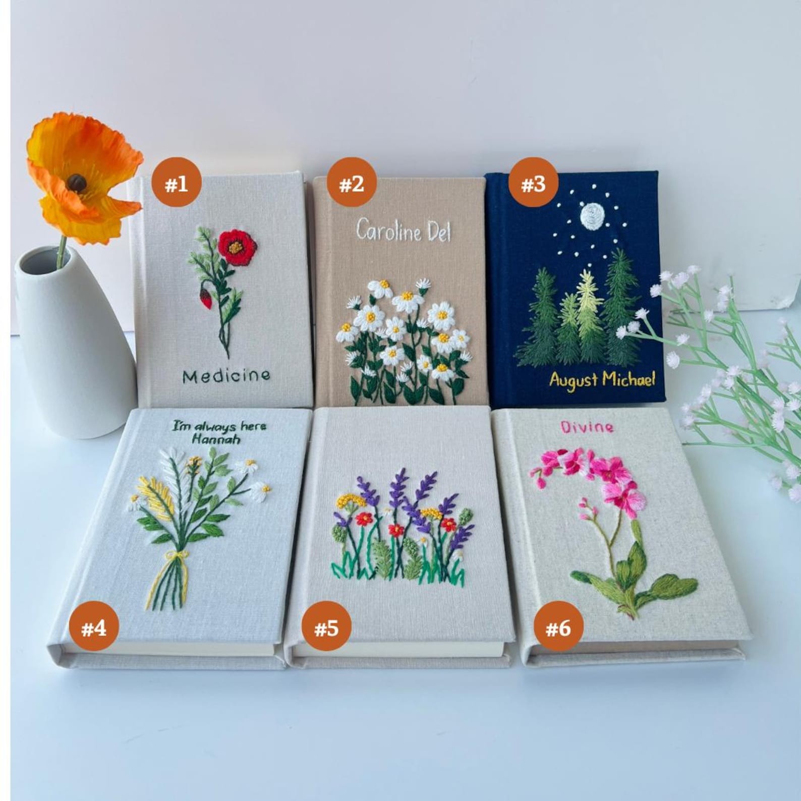 Looking for a meaningful, handcrafted gift or a charming notebook to inspire your daily thoughts? This Personalized Embroidered Notebook is the perfect blend of elegance and practicality. Beautifully embroidered with delicate wildflowers on the cover, each notebook is made with love and care — ideal for journaling, sketching, or note-taking.