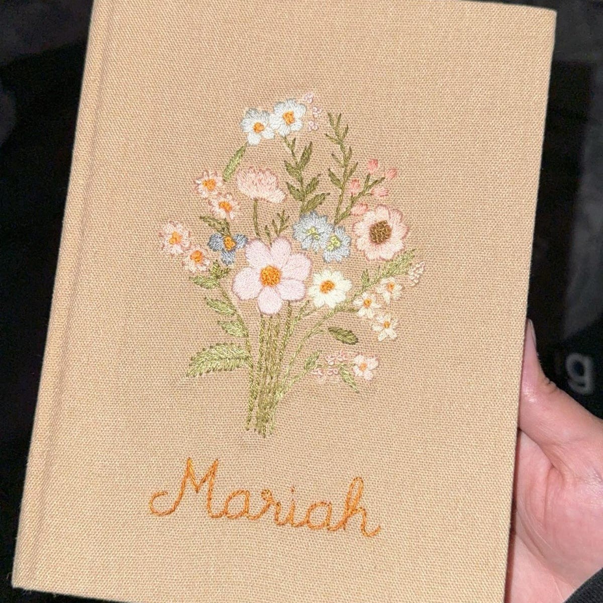 Looking for a meaningful, handcrafted gift or a charming notebook to inspire your daily thoughts? This Personalized Embroidered Notebook is the perfect blend of elegance and practicality. Beautifully embroidered with delicate wildflowers on the cover, each notebook is made with love and care — ideal for journaling, sketching, or note-taking.